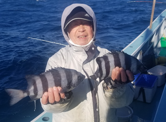 石鯛五目船🚢石鯛に真鯛交じり全員ゲット🐟‼️