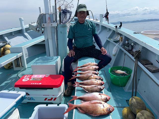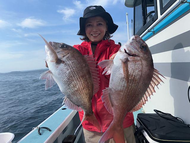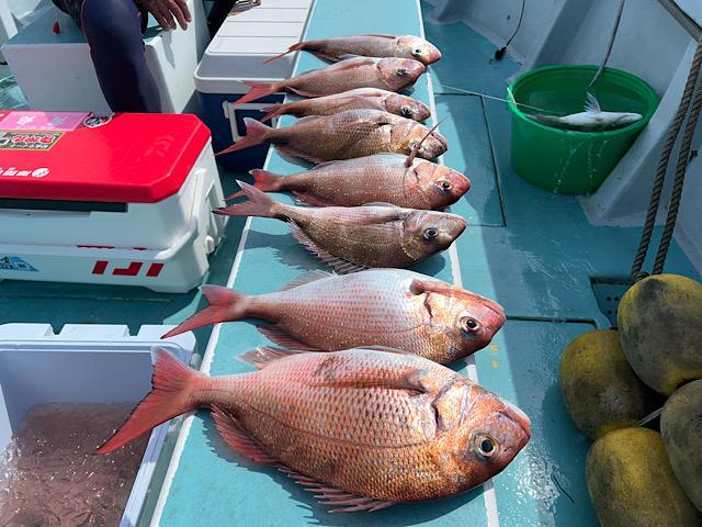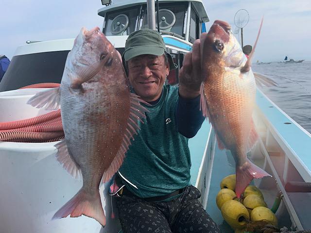 真鯛、アジの2本立て船🚢真鯛好調トップ8枚😀5.1キ ロも上がりました👍