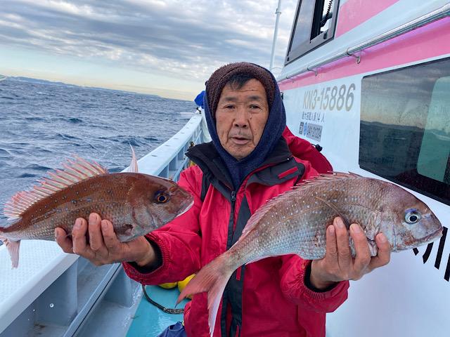 朝一真鯛GET!後半良型アジも入れ食いで皆さんいいお土産になりました!本日も皆さんお疲れ様でした!