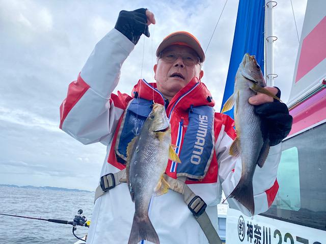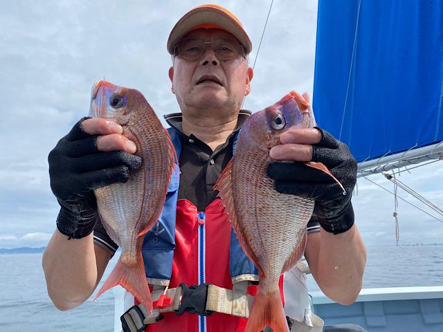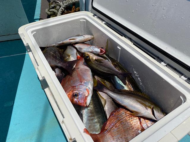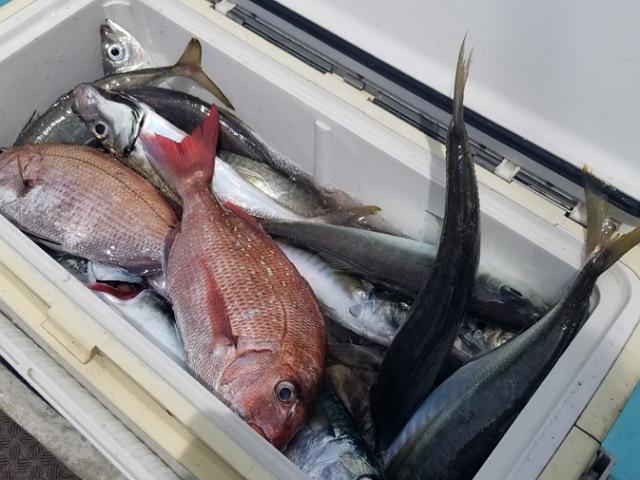 真鯛にハナダイ交じり後半アジ狙い大アジ食い活発クーラー満タン😄