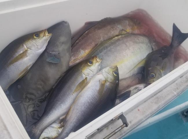 シマアジに石鯛、真鯛、黒鯛、イナダ、ショゴ、カワハギ、ウマ、メジナ、イサキ、アジなど上がりお土産になりました🎵😄