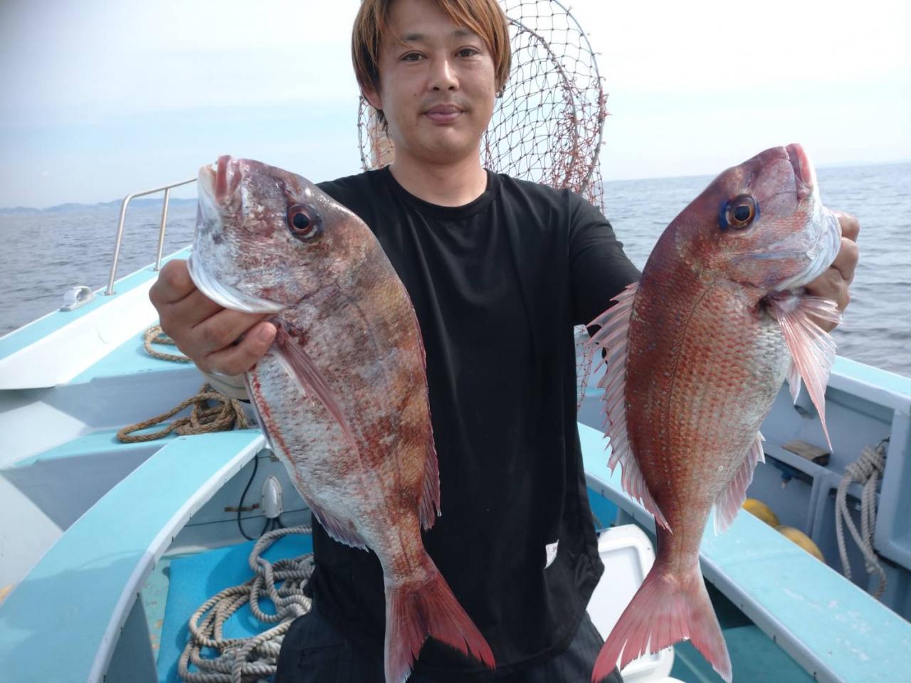 真鯛、アジの2本立て船🚢真鯛全員ゲット🐟😄